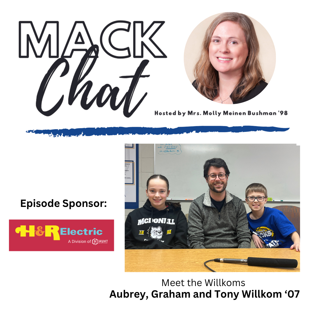 Tony Willkom and his wife, Justine are both MACS Class of 2007 alumni. Their children are now following in their footsteps at McDonell. On this episode of the Mack Chat, Tony and two of his children, 7th grader Aubrey and 4th grader Graham talk about their MACS experience, their favorite parts of school and why it fits for their family.